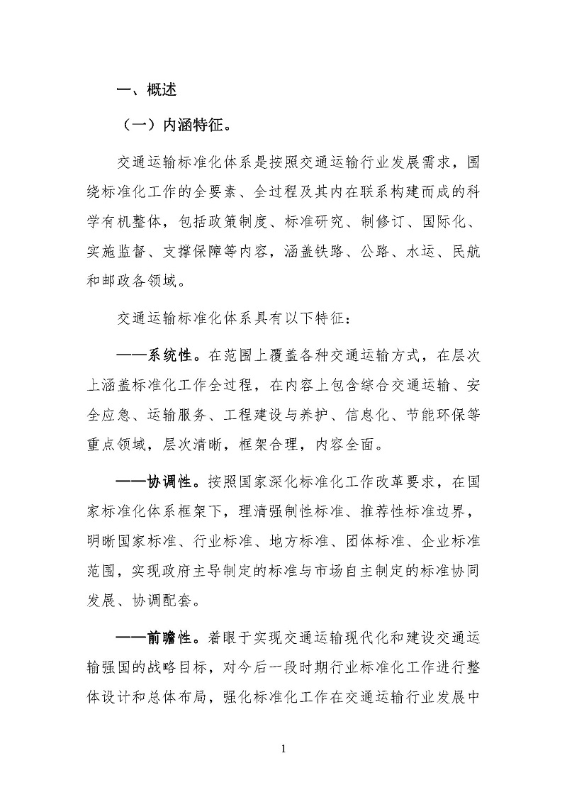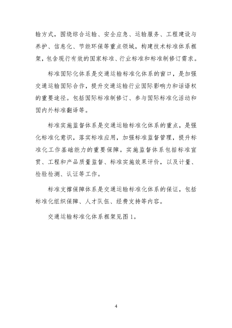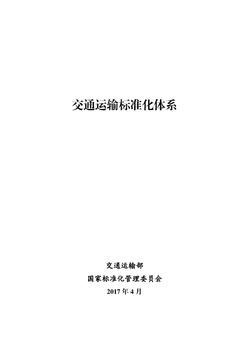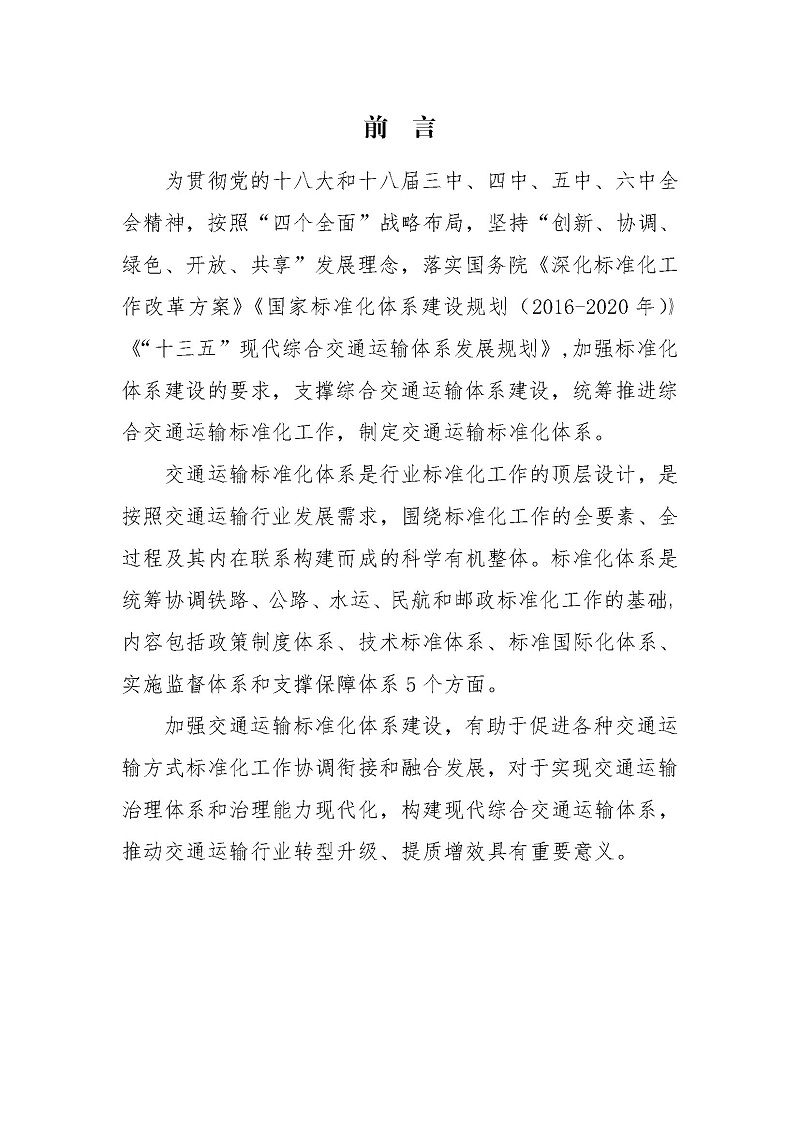 为贯彻落实国务院《深化标准化工作改革方案》《国家标准化体系建设规划(2016-2020年)》和《“十三五”现代综合交通运输体系发展规划》,加强和改进交通运输标准化工作,推进现代综合交通运输体系建设,促进铁路、公路、水运、民航、邮政等各种运输方式深度融合和协调发展,交通运输部、国家标准化管理委员会编制了《交通运输标准化体系》。现印发给你们,请认真贯彻执行,做好交通运输标准化各项工作。