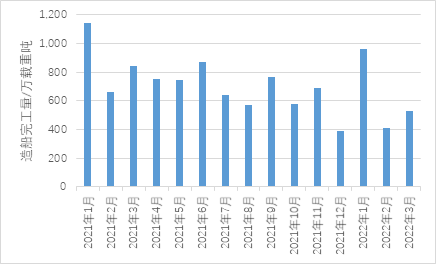 2022年一季度,全球成交新船订单263艘1726万载重吨,同比分别下降50.1%和63%;全球船舶完工交付312艘1903万载重吨,同比分别下降25.5%和27.9%。