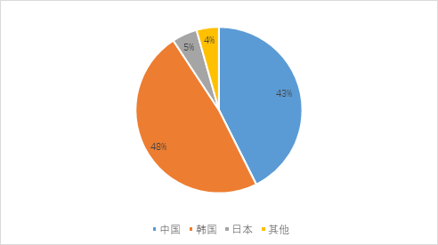 2022年一季度,韩国船厂成交新船订单97艘808万载重吨(457万修正总吨),按载重吨计,全球市场份额为48%,位居全球第一位。中国船厂成交新船订单130艘715万载重吨(386万修正总吨),按载重吨计,全球市场份额为43%,位居全球第二位。日本船厂成交新船订单9艘82万载重吨(25万修正总吨),按载重吨计,全球市场份额为5%。