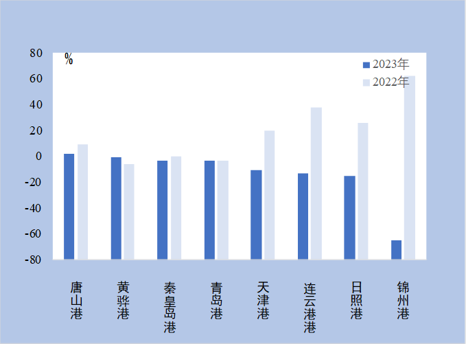 图3 2023年上半年北方煤炭重点装船港一次下水量增速