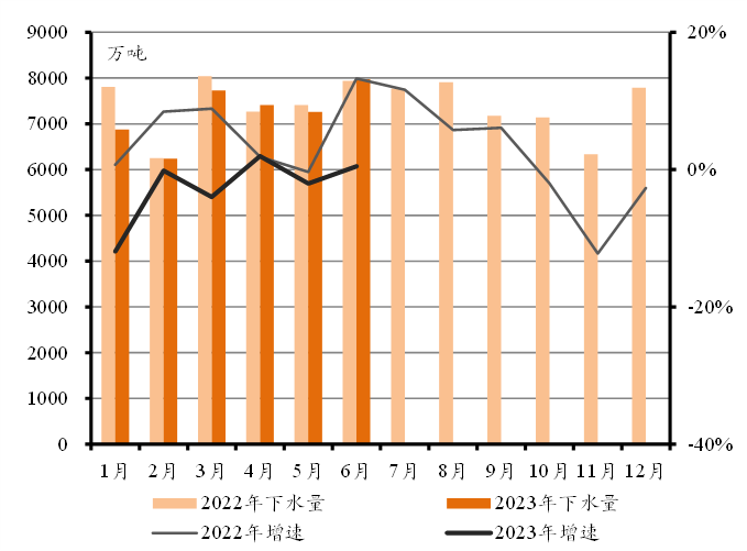 在国内煤炭需求总体稳定、产量增长、国际煤价下滑、我国放开澳煤进口等因素影响下,煤炭海运需求稳定增长,外贸进口大幅增长,一次下水量小幅下降。上半年,沿海港口共完成煤炭吞吐量9.55亿吨,同比增长7.1%;煤炭一次下水量4.43亿吨,同比下降2.5%;外贸进口量完成1.63亿吨,同比大幅增长84.3%。预计2023年我国经济总体将呈现持续复苏,煤炭消费量在42亿吨左右。预测全年煤炭吞吐量达19.0亿吨,同比增长4.1%;其中,煤炭一次下水量9.1亿吨,外贸进口量2.8亿吨,同比分别增长0.7%和28.8%。